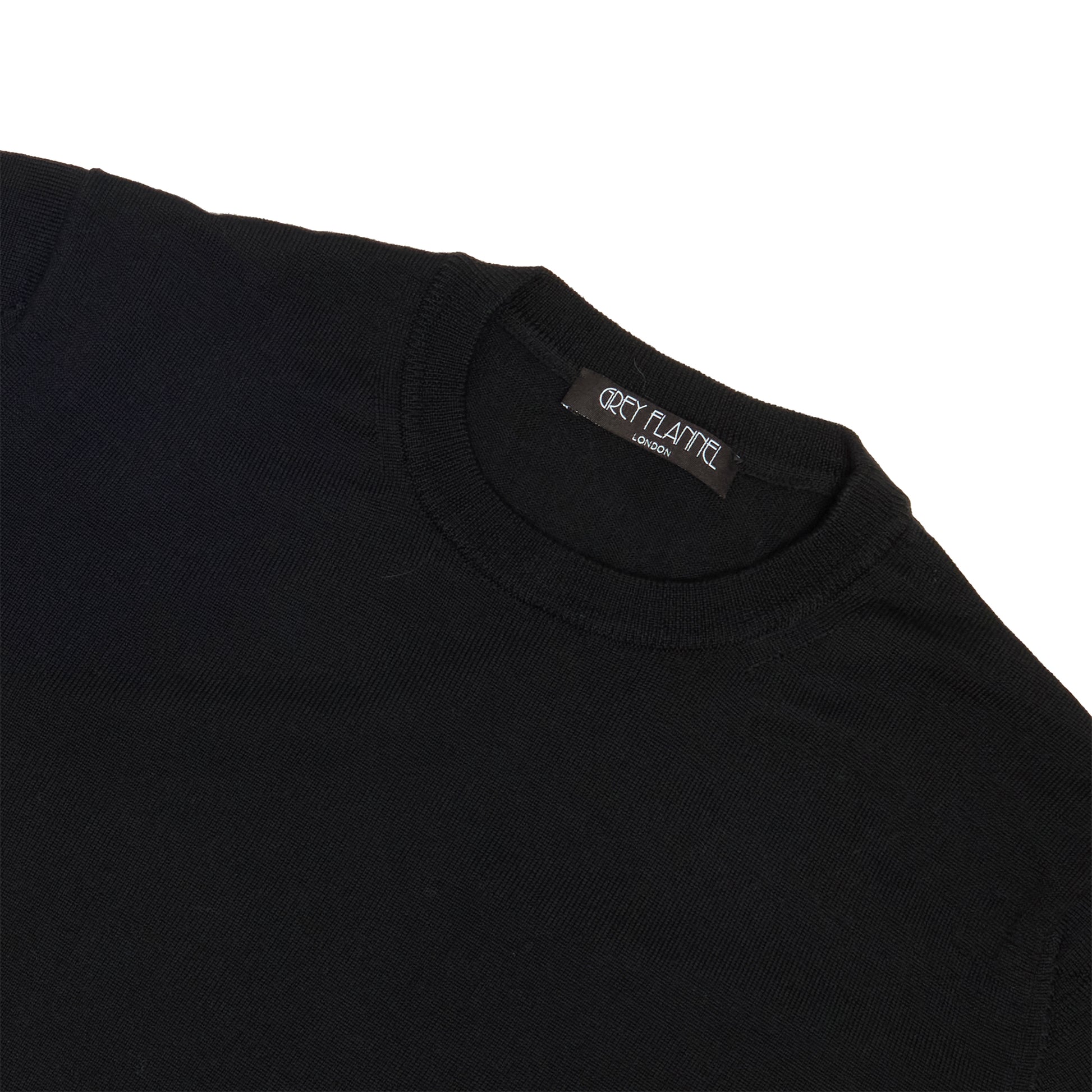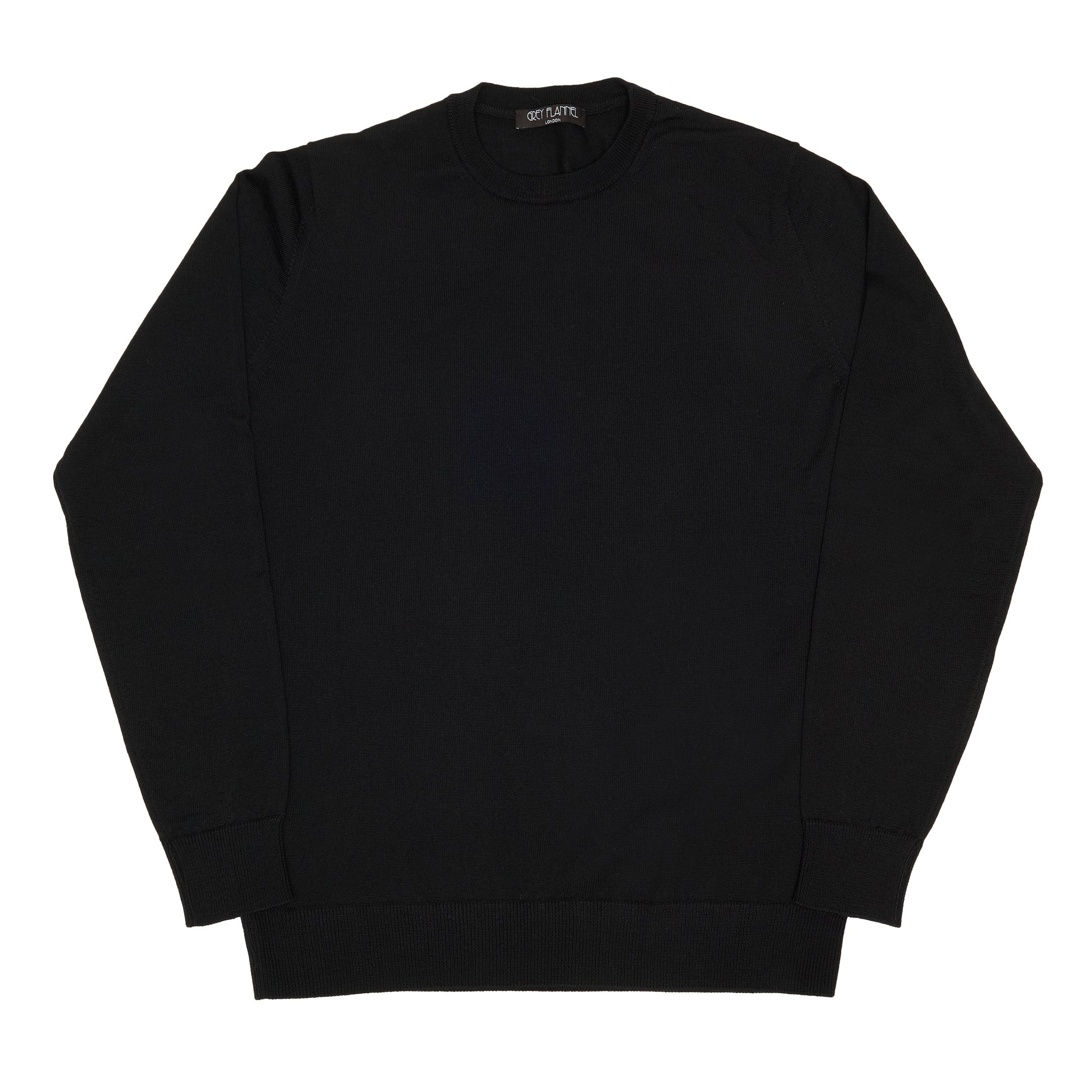 Black Wool Long Sleeve Crewneck Sweater