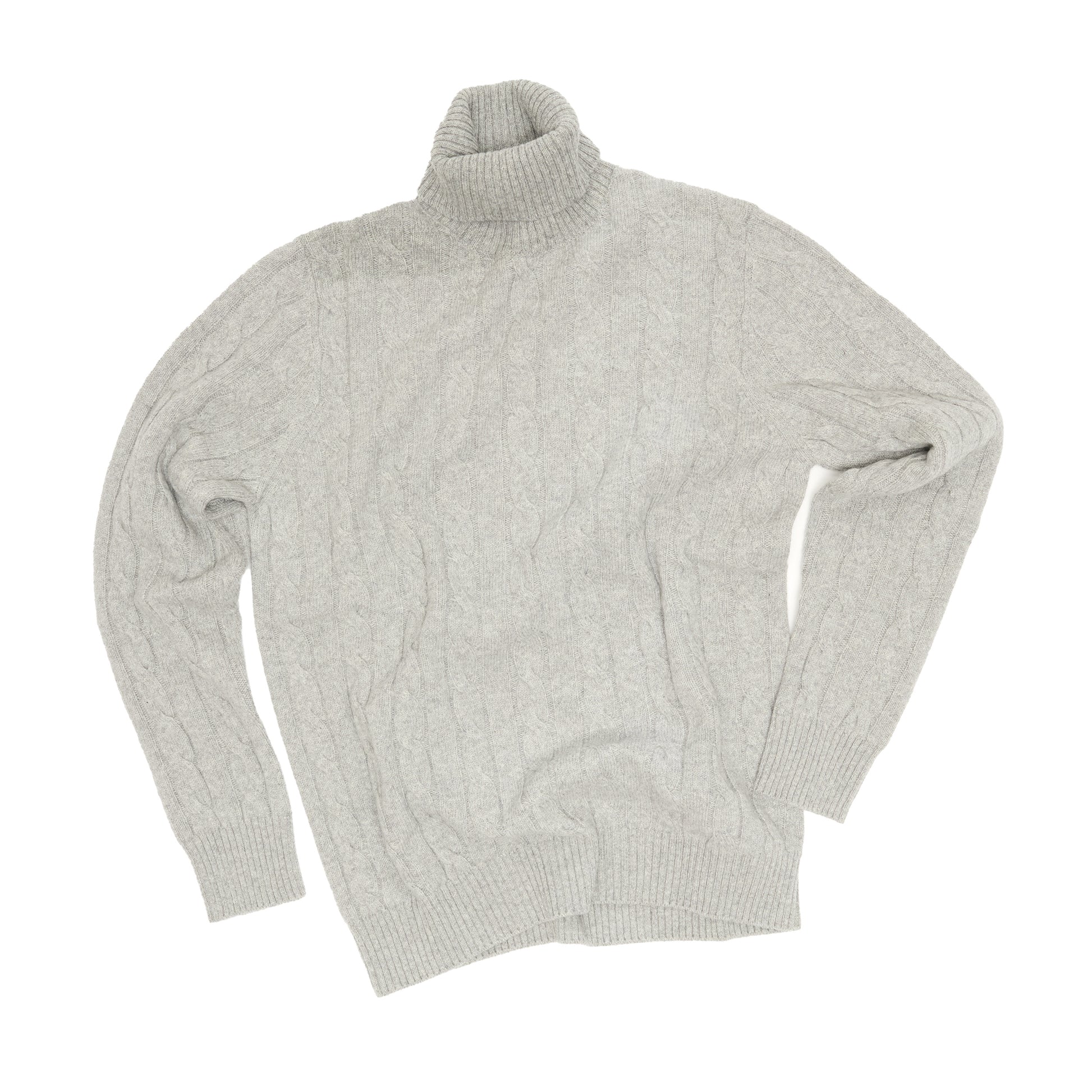 Grey Cashmere Aran Rollneck Sweater