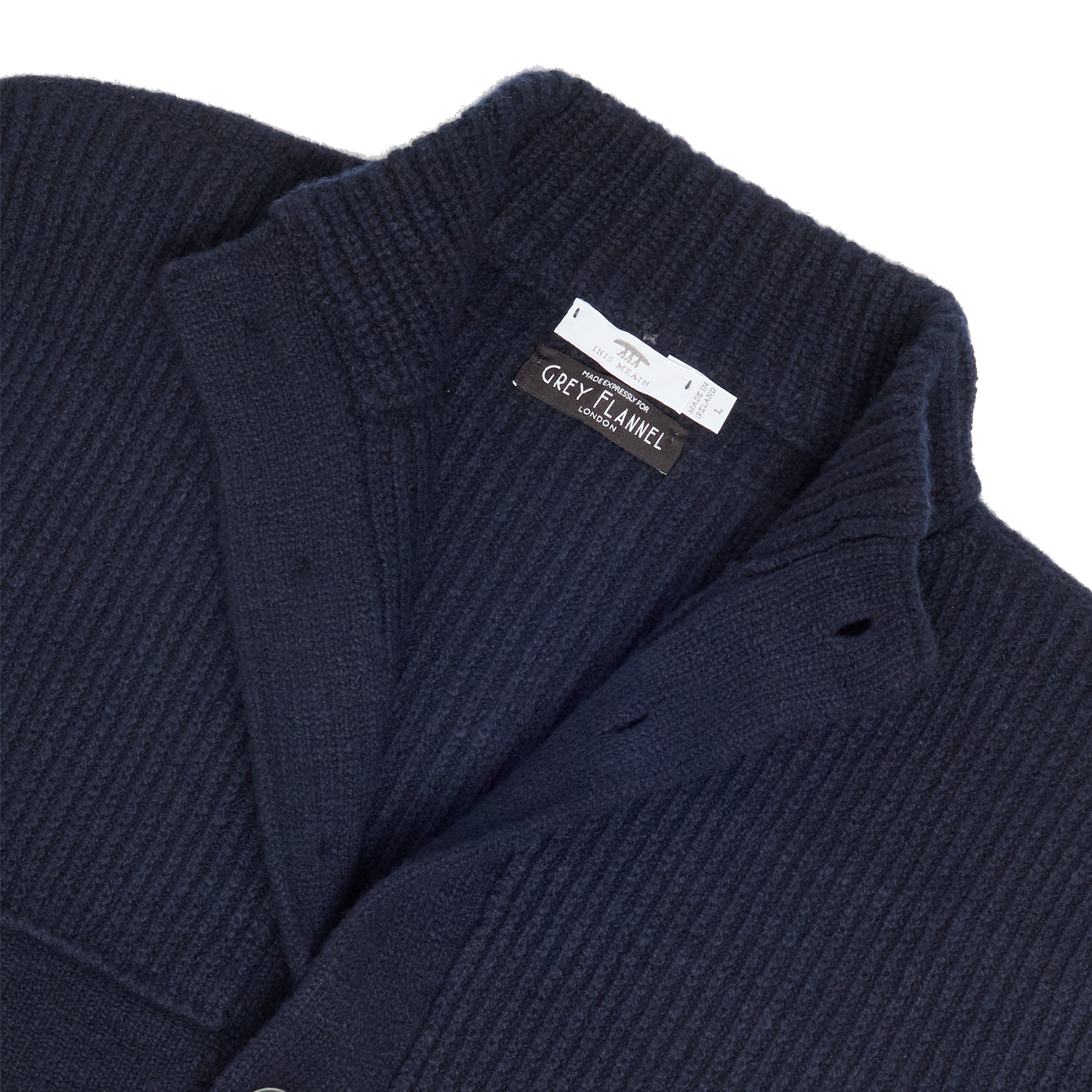 This piece was inspired by jackets made for island weather, especially the harsh winter storms. A key feature is the extra layer of knit on the shoulders for warmth and protection when carrying currach (the island fishing craft) and other equipment.