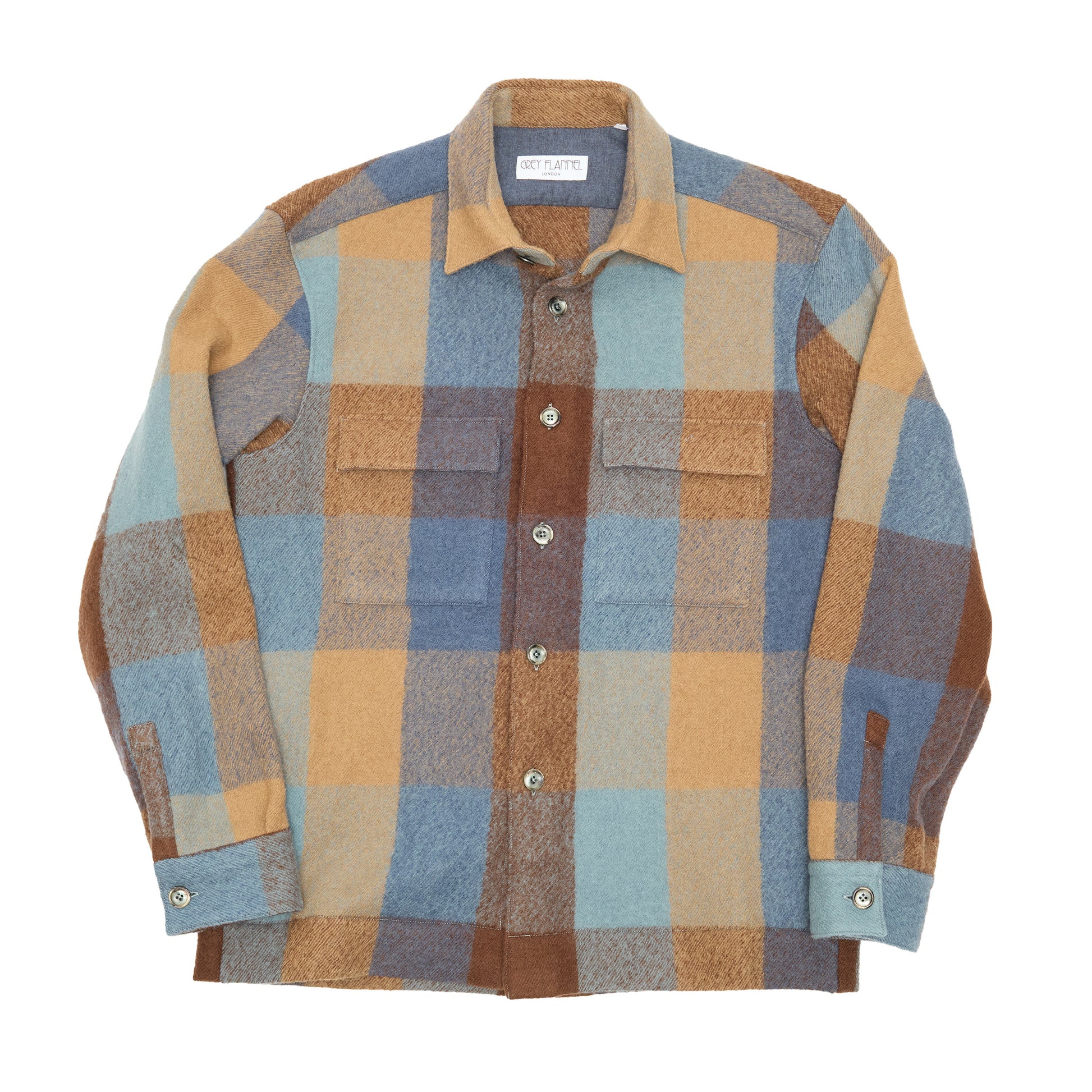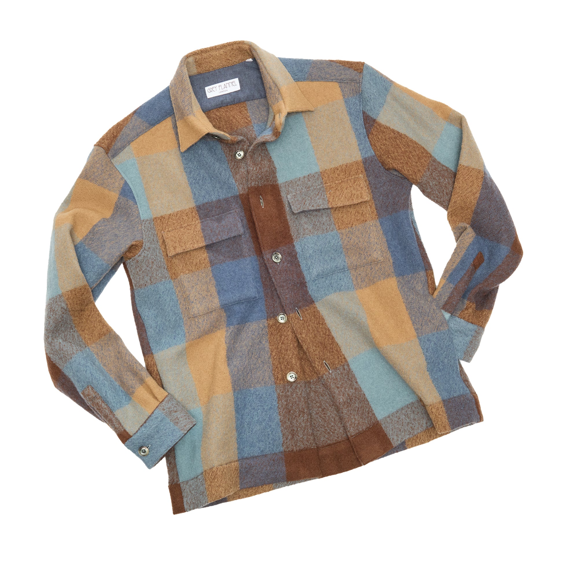 In for AW25, our Storm Overshirt is a heavier companion to our fleck-overshirt. The storm overshirt is constructed in boiled 100% virgin wool, with a texture closer to boucle. Similar to the Fleck Overshirt at first glance, though a little closer to a mariners C.P.O. or hunting shirt in design.