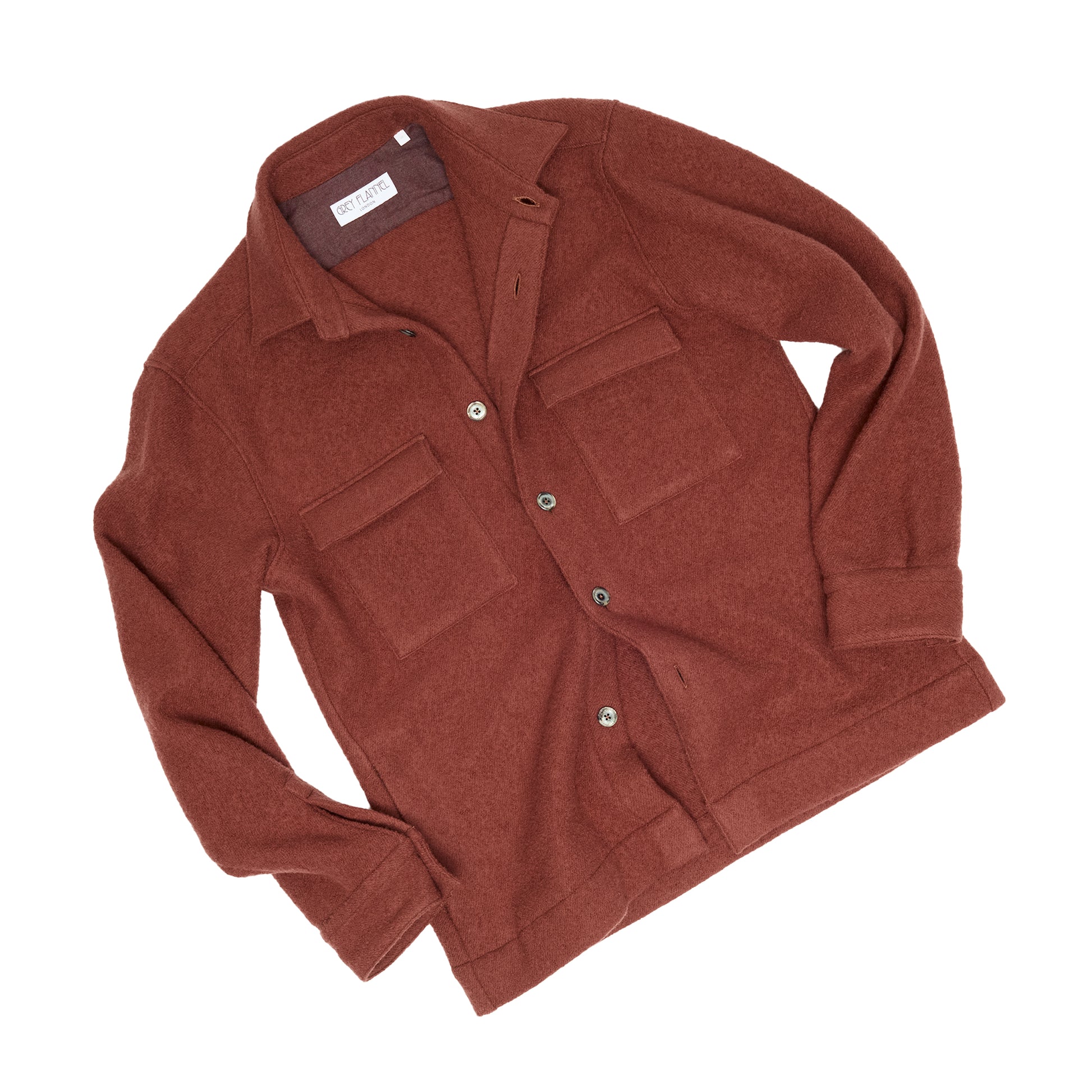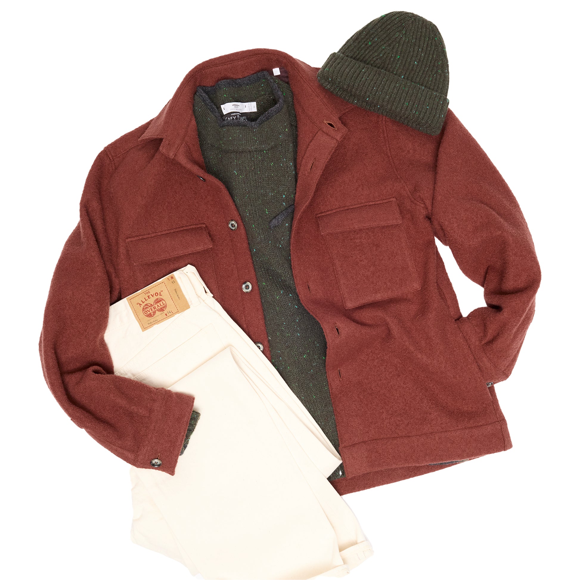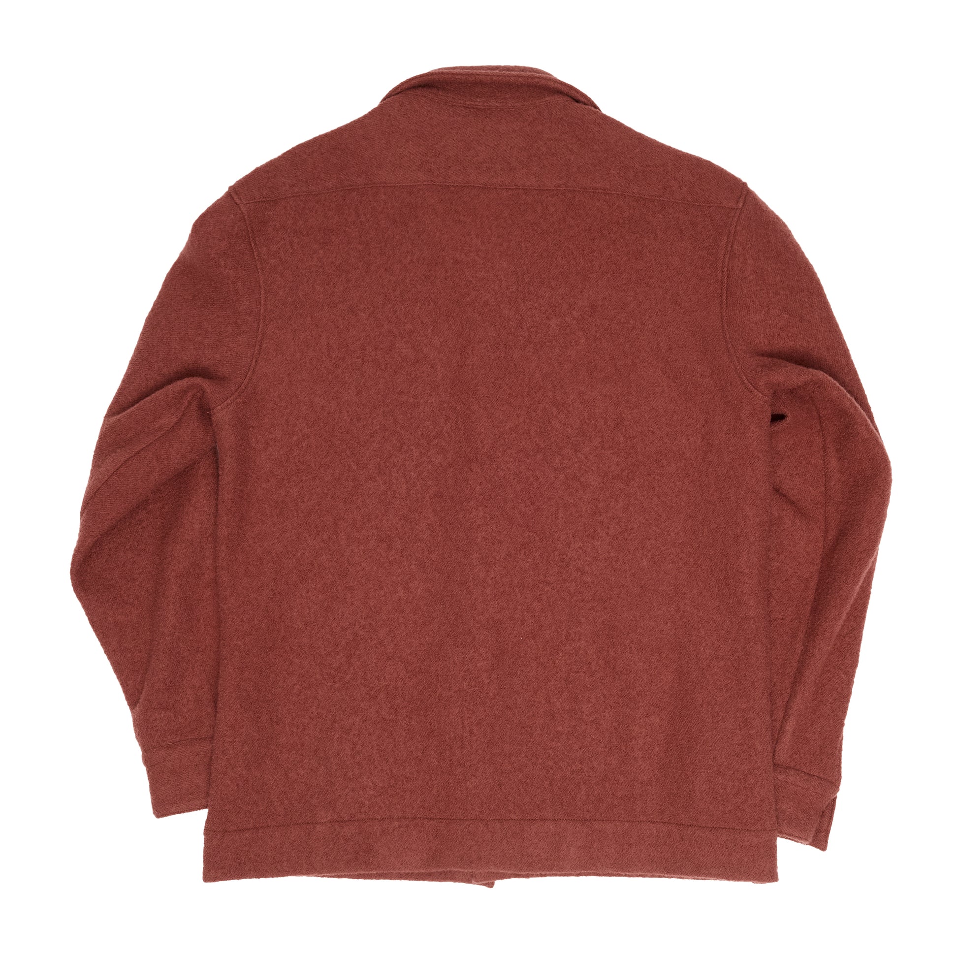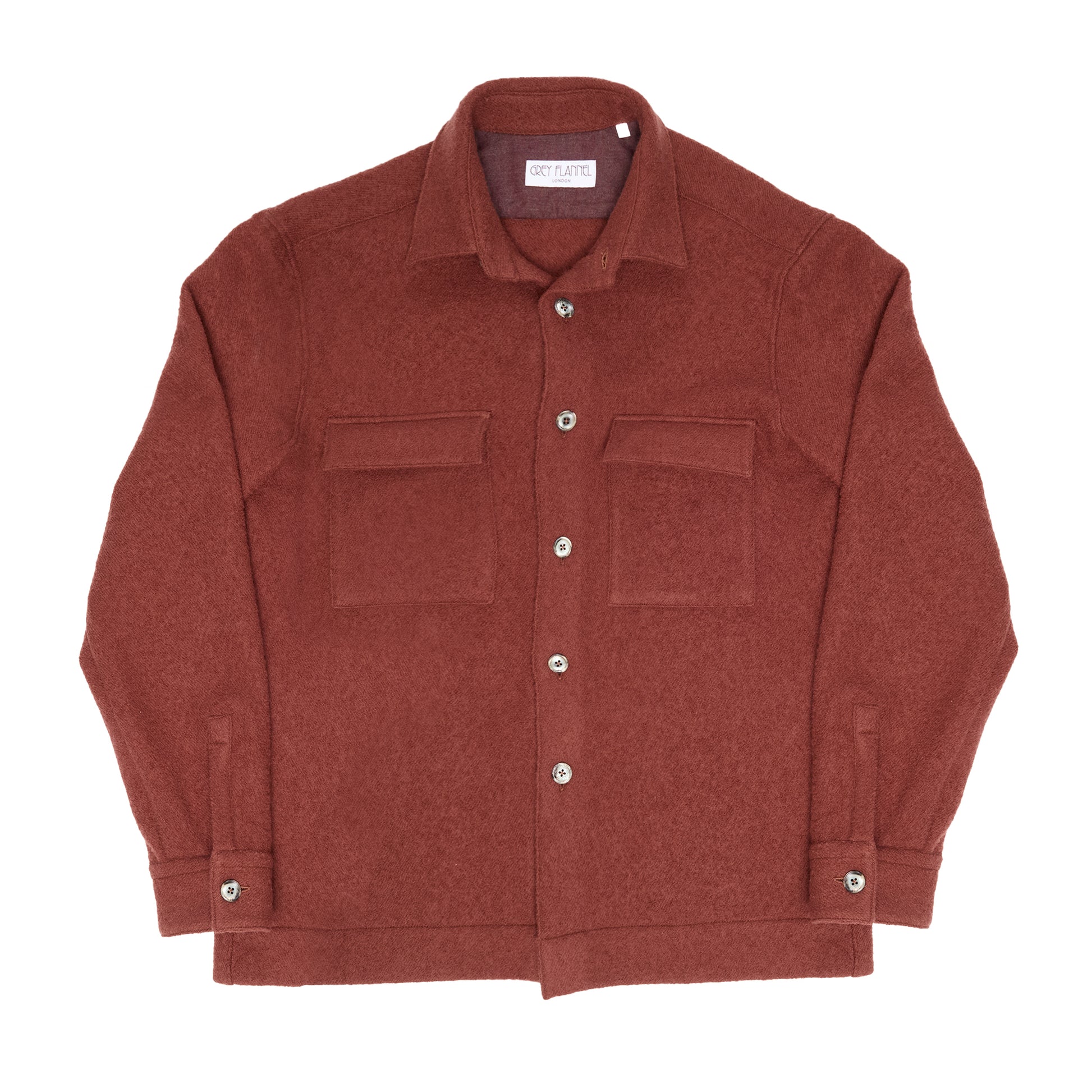 In for AW25, our Storm Overshirt is a heavier companion to our fleck-overshirt. The storm overshirt is constructed in boiled 100% virgin wool, with a texture closer to boucle. Similar to the Fleck Overshirt at first glance, though a little closer to a mariners C.P.O. or hunting shirt in design.